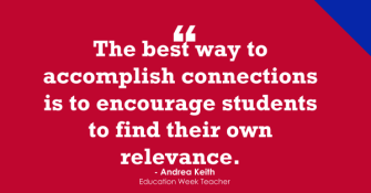 Students are usually more invested in their learning when they can make personal connections with the content and concepts in their educational experiences. The key to making lessons more relevant must first be to realize that relevance is in the eye of the beholder. That means that teachers have to know their students鈥昻ot just their scores and daily presence, but what affects them, what excites them, even what upsets them. Relevance must be identified by each student, so well-meaning teachers who present a connection based on their own experience can run the risk of missing the mark. We certainly see frequent reminders in our own society of insensitivity and inequity and should strive for better in our classrooms.