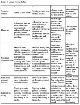 To help students learn about this, Ms. Williams presented them with sample proposals of building designs acquired from city records for their review. She engaged them in think-alouds during which she showed how an expert in science and engineering thinks about the plans, articulating ideas like, “I notice that the proposal includes technical terms like ...... and the text references the circuitry schematics on page 2.” She then had students practice interpreting other diagrams with partners. They compared different proposals from other cities to see what had the most appeal to city planners. They reviewed design constraints and building laws, noting requirements on documents they referenced when composing their proposals. They utilized observation and analysis skills, and drew conclusions using a lens of inquiry to investigate other proposals before drafting their own. Using a science criteria rubric (Figure 3), they evaluated their own drafts before finalizing and presenting to a mock engineering firm.