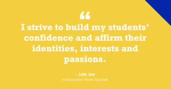 Getting overwhelmed by insecurity is common for many. In a classroom setting, the pressure to remain silent and share very little can be immense, especially if the environment doesn鈥檛 feel safe. Over the course of the school year, I strive to build my students鈥 confidence and affirm their identities, interests, and passions. A student who feels out of sorts when called to discuss a scene in a play at length might expound at length about climate change. Another student might sit quietly during a grammar lesson but animatedly talk about the latest concert he attended. And yet another student might come in late on occasion but share about her latest adventures at work. When I create assignments, I try to give my students opportunities to look within and learn writing skills along the way.